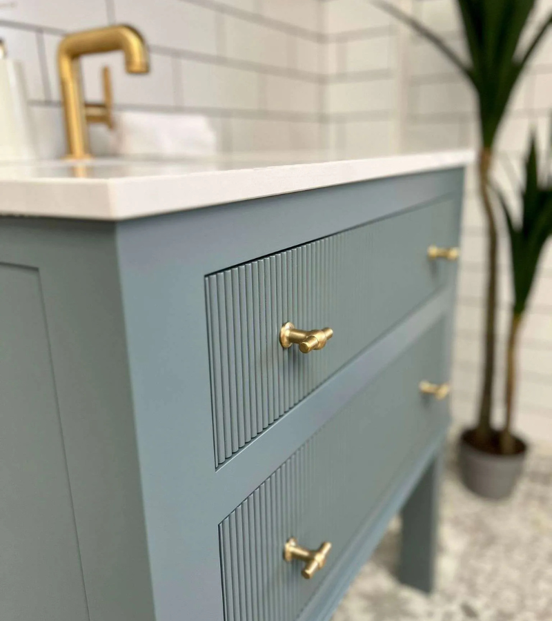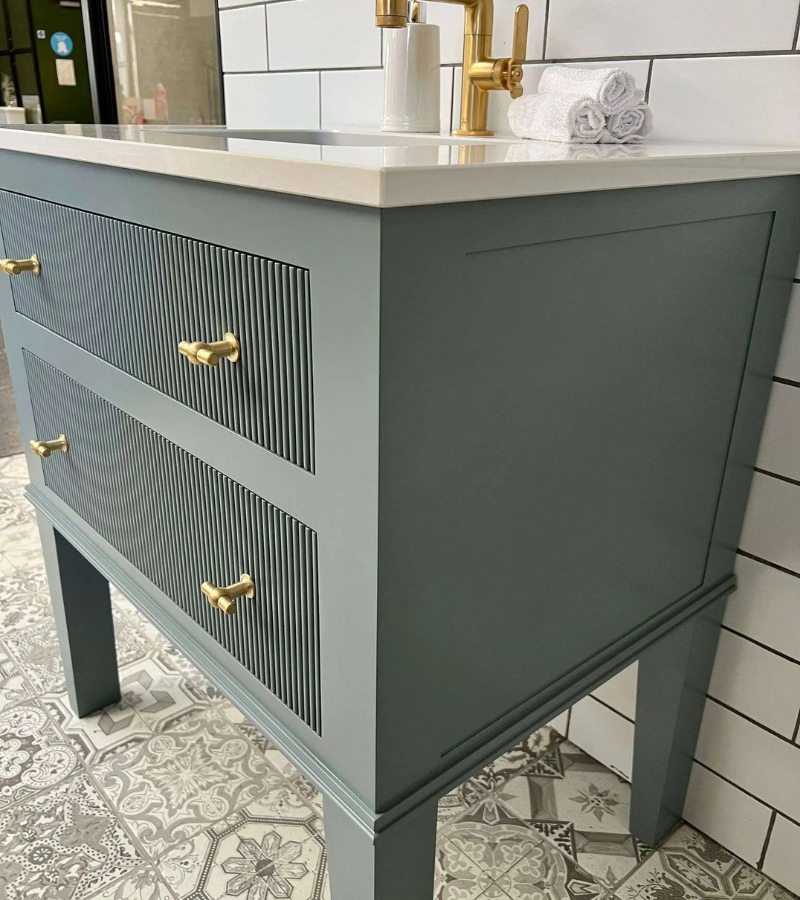 The Basildon has 2 readed drawers, chunky tapered legs and exquisite detail under the bottom drawer, giving a sturdy yet contemporary design that will work well in any bathroom. Available in painted or oak finishes. Width 600mm to 1200mm available.