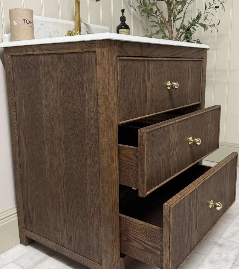 A new contemporary, but timeless design that has three drawers on view providing an abundance of storage, all with hidden cross frames between to give them a sleeker look and cock beading placed on the drawer front rather than opening. Available in both painted and oak finishes. Width 600mm to 1200mm available.