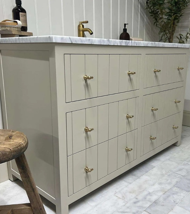 Composing part of our new and exclusive range of reeded oak vanity units designed by HouseNine Design. Mini Malibu offers three elegant reeded drawers, giving considerable amounts of storage space to this sophisticated design. Reeding is Horizontal. Width 600mm to 1200mm. Oak or Painted finish available.